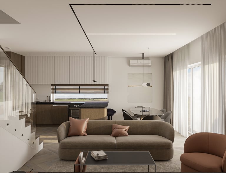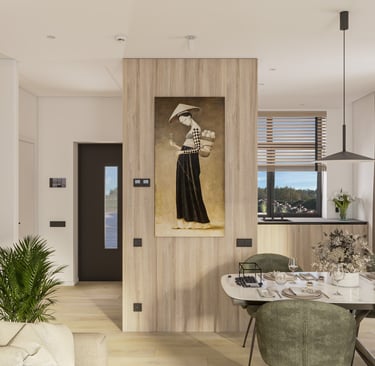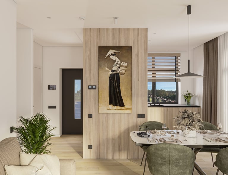 Dviejų aukštų, 122 m² sublokuoto namo interjeras.