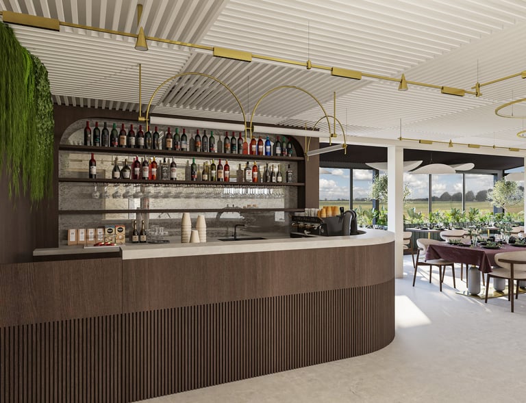 Dviejų aukštų, 300 m² kavinės interjeras.
